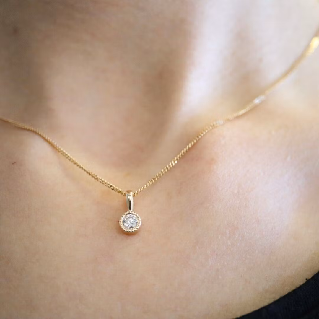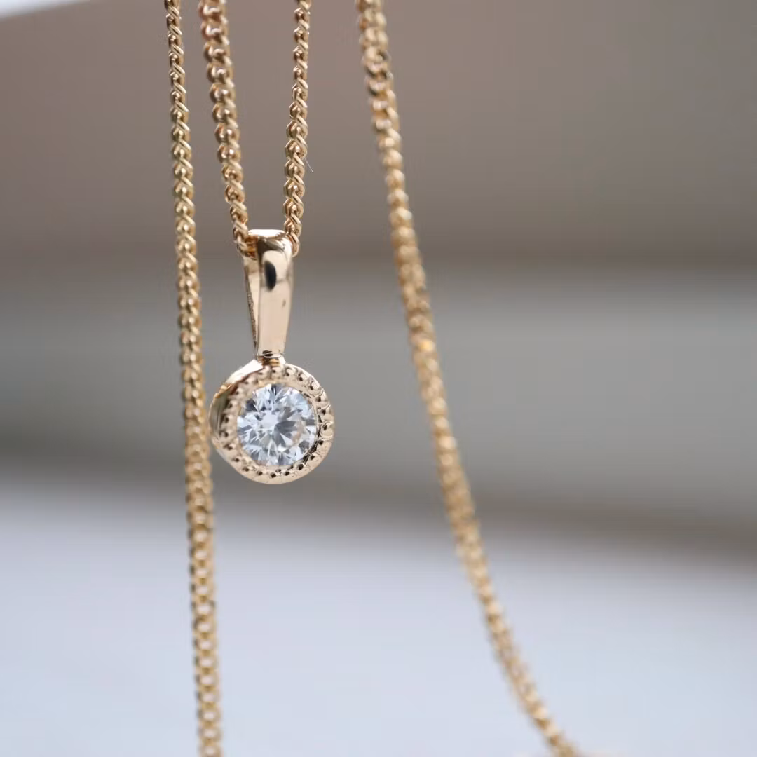 Diamanten har en liten kant med små, små kulor så kallad milligriff som gör att det får en liten känsla av vintage.