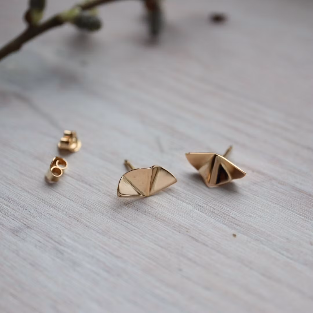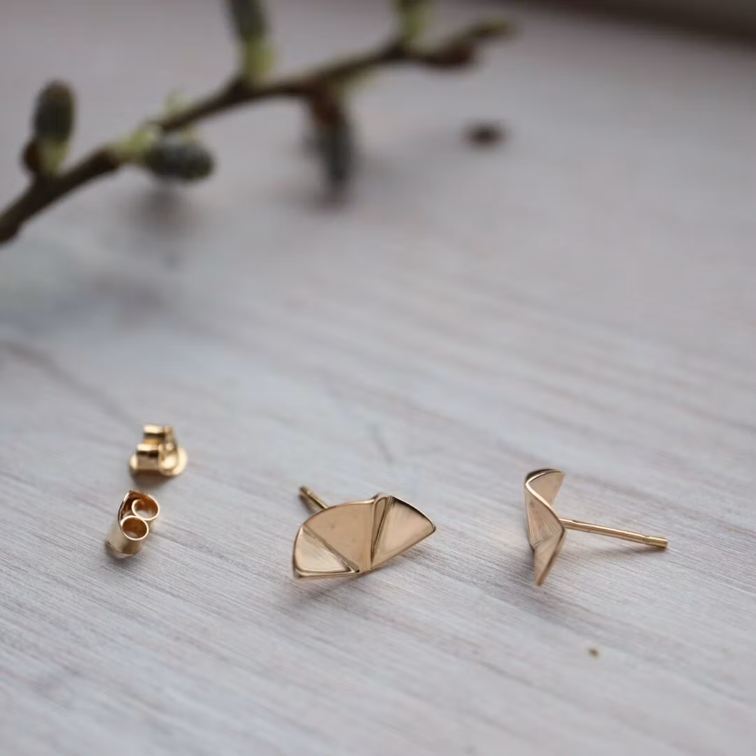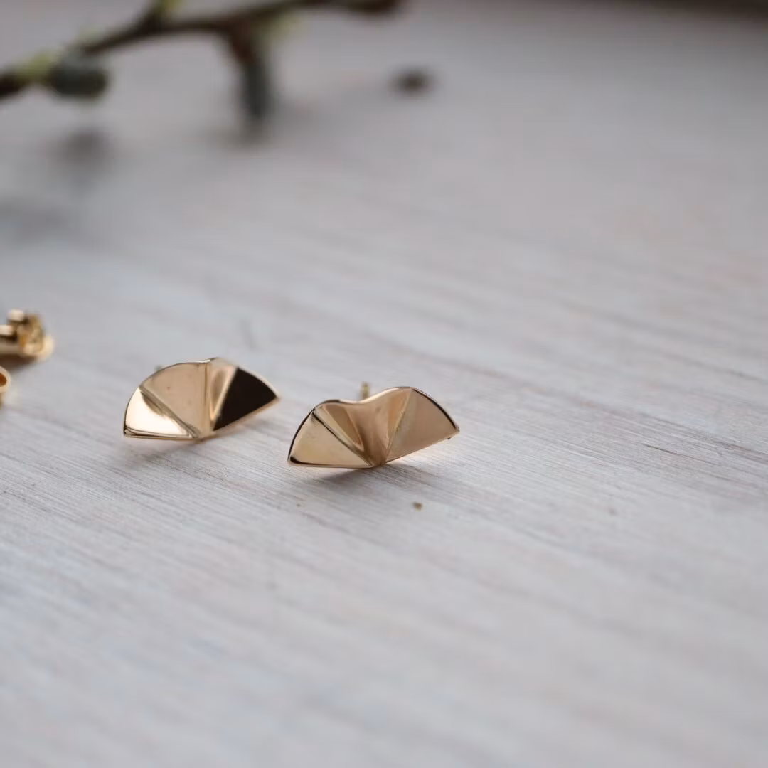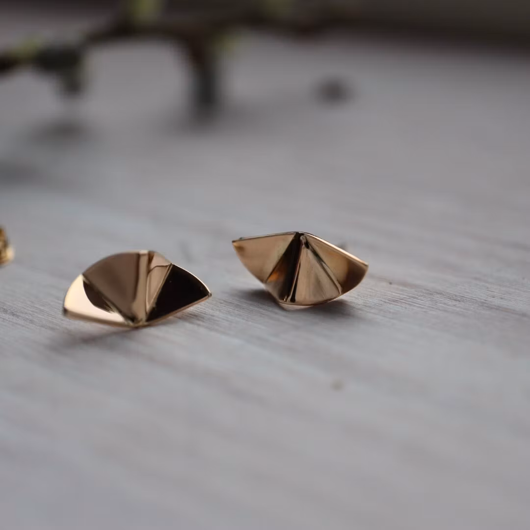 Örhängen tillverkade i 18K rött guld med en form som mjukt breder ut sig, likt ljus som sprider sig i rörelse. Linjerna skapar ett luftigt och levande uttryck, där varje vinkel fångar och reflekterar ljuset.